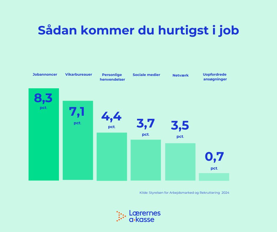En ny analyse fra Styrelsen for Arbejdsmarked og Rekruttering (STAR) viser, at det at søge uopfordret ikke er den mest effektive metode til at komme hurtigt og varigt i job. Faktisk placerer uopfordrede ansøgninger sig som den mindst effektive strategi med en succesrate på kun 0,7%, sammenlignet med de 8,3%, som opnås ved at svare på opslåede jobannoncer.